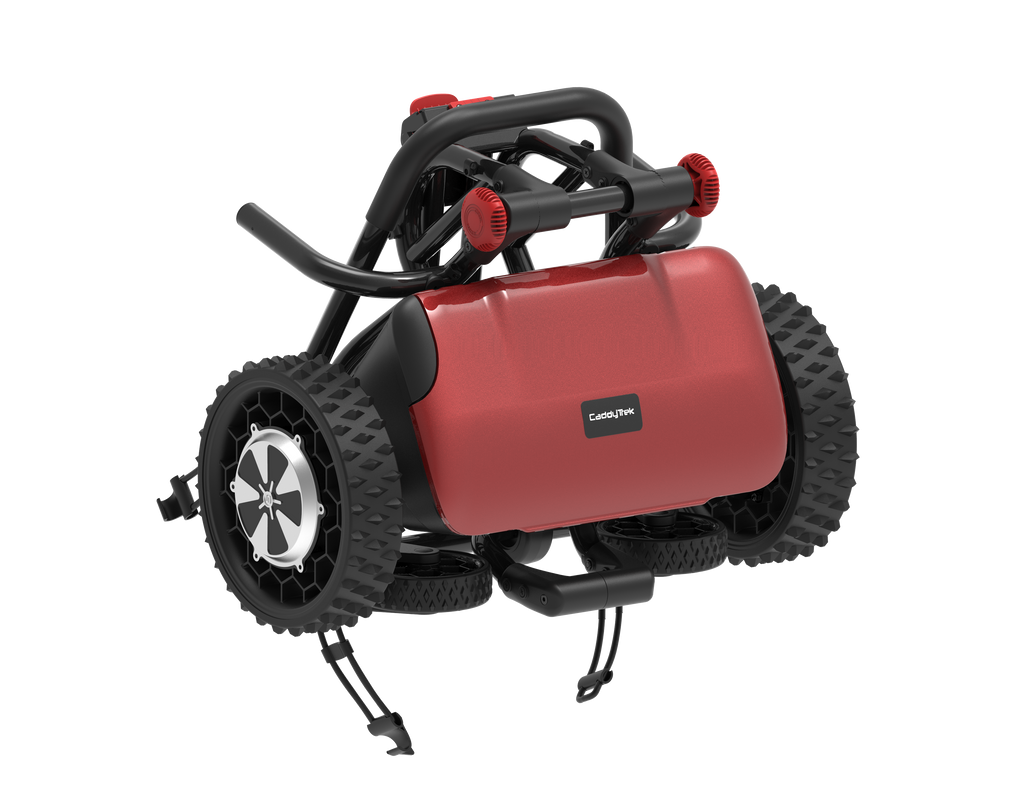 Total weight for the unit comes in at 39 pounds. Quickly remove the battery for even more weight savings. Fold the CaddyTrek down in a matter of seconds for easy transport in the trunk of your car to the club house or for storage at home.
