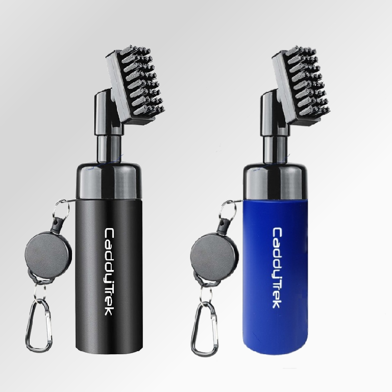Ensure that your golf clubs stay in tip-top shape for the entire game with our Golf Club Washer. The unique press-pump water spray bottle holds 5 oz’s of water and features large nylon bristles for easy cleaning and a press-proof head cover to ensure no accidental presses or leaks. Also comes with 2.5 Ft retractable zip-line plus aluminum clip for easy