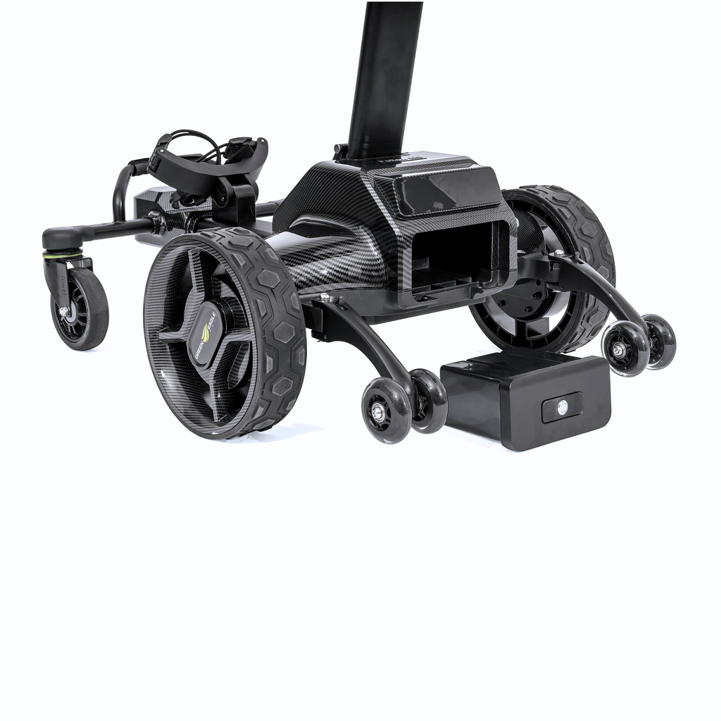 - MARCHING MODE: In this mode, you can walk alongside your Follow M8 while benefiting from the assistance of the electric motors, comfortably adjusting the caddy’s speed using the dedicated knob on the handle.