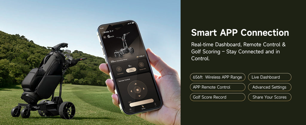 - Intuitive Remote & Dashboard Control: Command your electric golf cart at your fingertips! Adjust speed, monitor battery, or toggle follow-me mode via ergonomic remote & dash display. Ultimate control for modern golfers. Real-time control at your fingertips: Monitor battery, toggle follow/remote modes, and adjust speed on the intuitive LCD panel. Smarter than standard golf electric push cart systems.