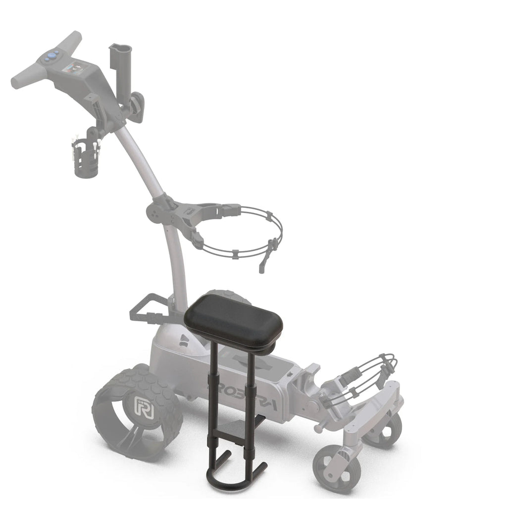 Comfortable padded seat with a bracket for easy attachment to the base frame of all Robera models, allowing you to sit and take a rest on the golf course.